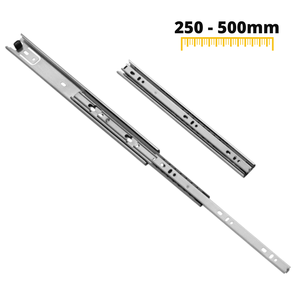 Der Vollauszug erlaubt es, die Schublade bis zum Maximum auszufahren (sie bleibt dabei 100% stabil und fest). Möglichkeit der Demontage der Führungsarme. Die maximale Belastbarkeit dieser Führungen beträgt 15 Kilogramm. Höhe - 30 cm, Materialstärke: 0,8 / 0,8 / 0,8mm. Der Führungssatz kann auf verschiedenen Schubladentypen montiert werden. Es funktioniert gut für Küche, Zimmer, Schlafzimmer und Büromöbel. Wenn Sie nach Führungen in anderen Maßen suchen, schauen Sie in die anderen Kategorien!