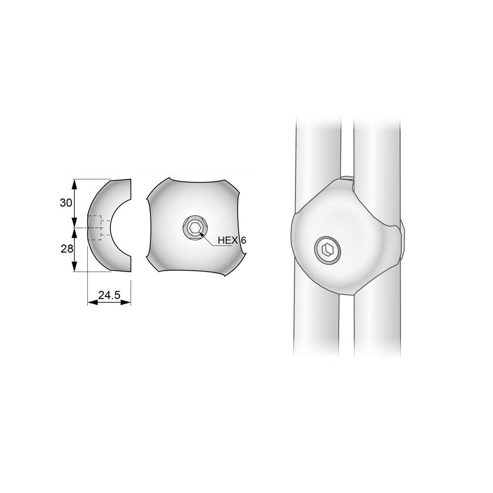 Dieser Verbinder wurde für Rohre mit einem Durchmesser von 25 mm entwickelt. Außerdem ist die Chromfarbe eine Standardfarbe für Garderobenbeschläge, so dass sie in Ihrem Ankleidezimmer sicher nicht zu sehr auffällt. Ganz zu schweigen davon, dass das Material sehr gut und äußerst solide ist, da es sich um Zink in Kombination mit Aluminium handelt. An der Verarbeitungsqualität und der Arbeit, die dieser Parallelkugelverbinder für Sie und Ihre Garderobe leisten kann, werden Sie nichts auszusetzen haben.