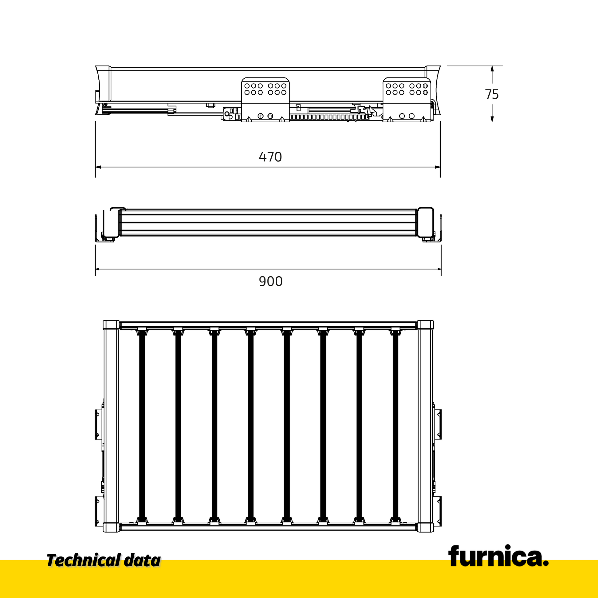 Technische Daten: Ausziehbarer Hosenbügel für 90cm-Schrank Soft-Close - Einzelner Fachboden - Grau
