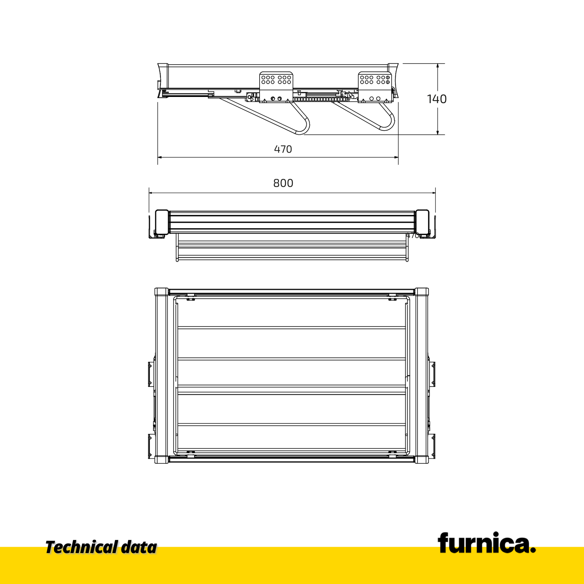 Technische Daten: Ausziehbare Ablage für Schuhe 80cm Soft-Close - Chrom/Aluminium - Grau