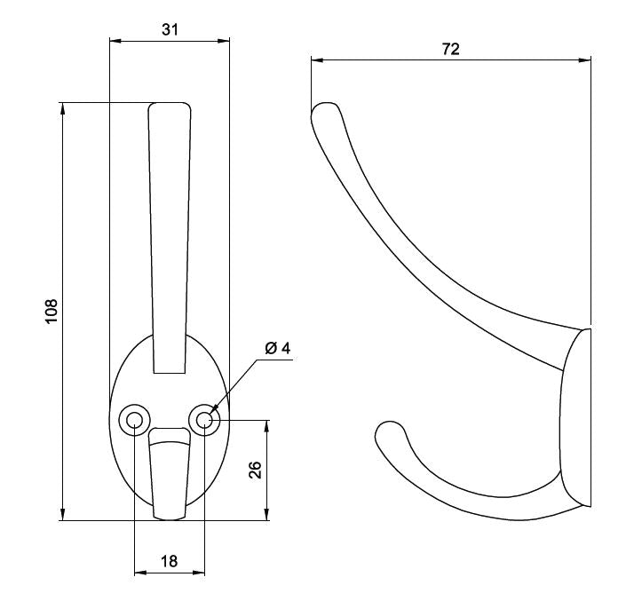 Technische Daten: Doppelter Hut- und Mantelhaken -108mm - Silber