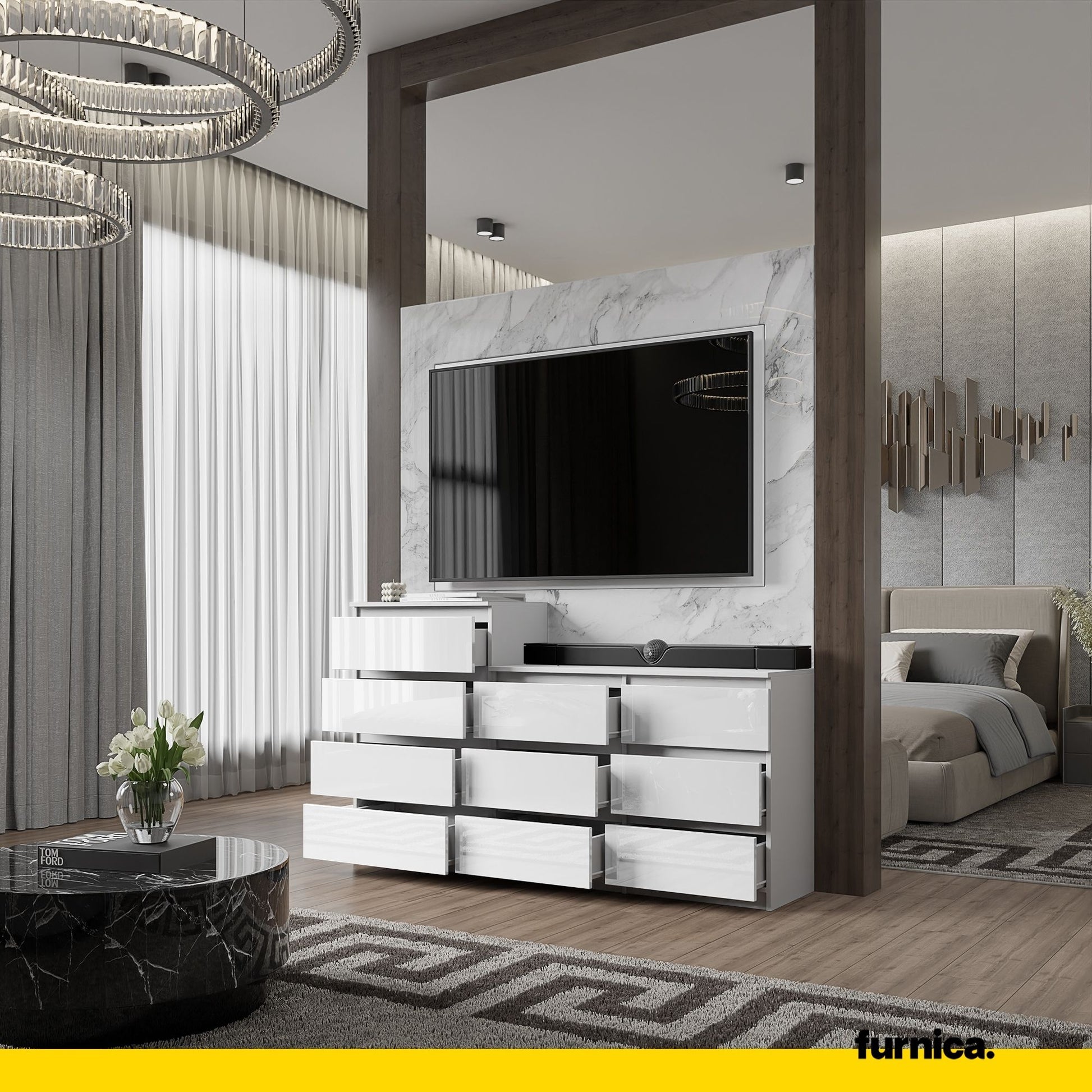 GABRIEL - Kommode mit 10 Schubladen - Weißer Glanz