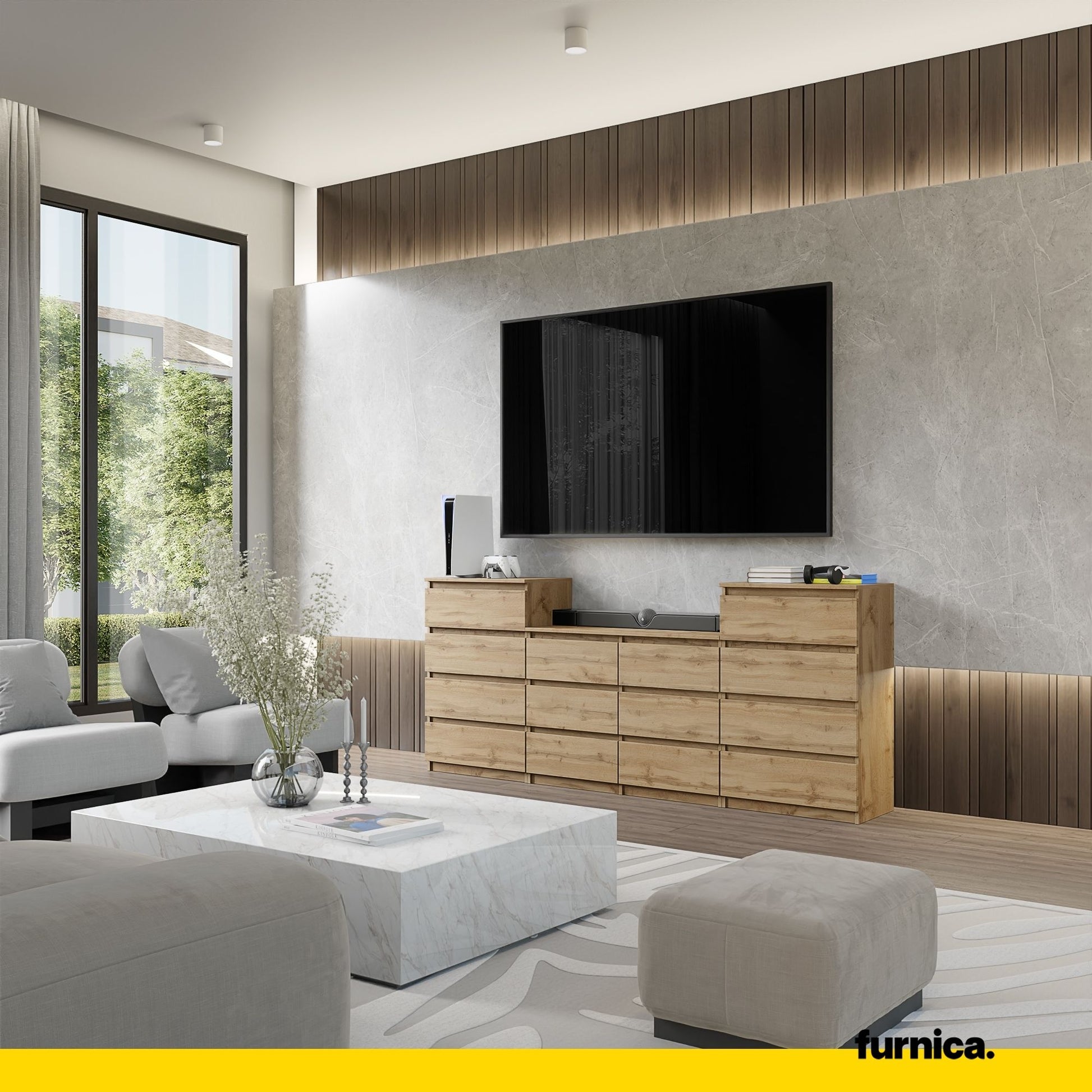GABRIEL - Kommode / Sideboard mit 14 Schubladen (4+6+4) - Wotan Eiche