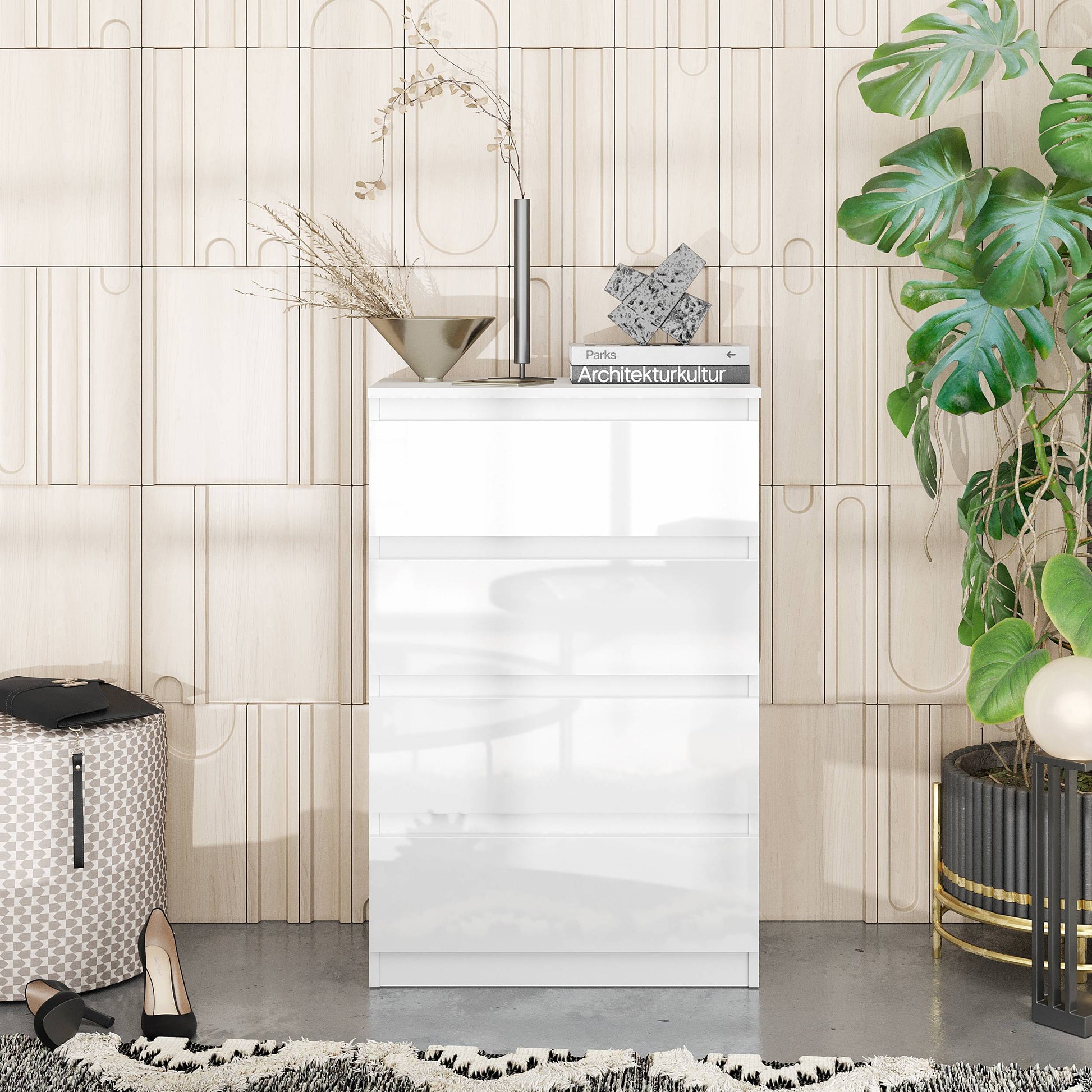 Sideboard GABRIEL mit vier Schubladen - weiß glänzend