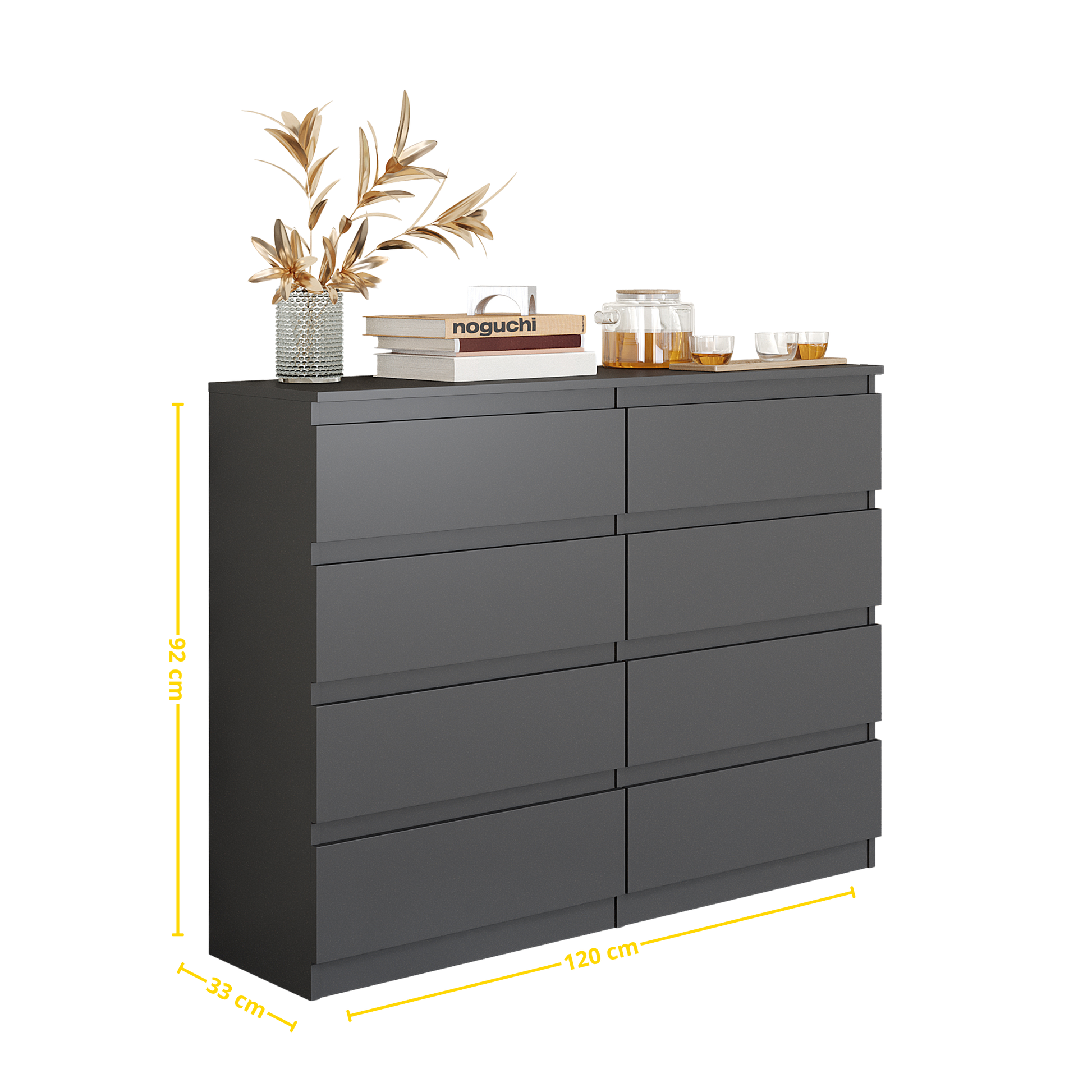 Kommode mit 8 Schubladen in Anthrazitgrau