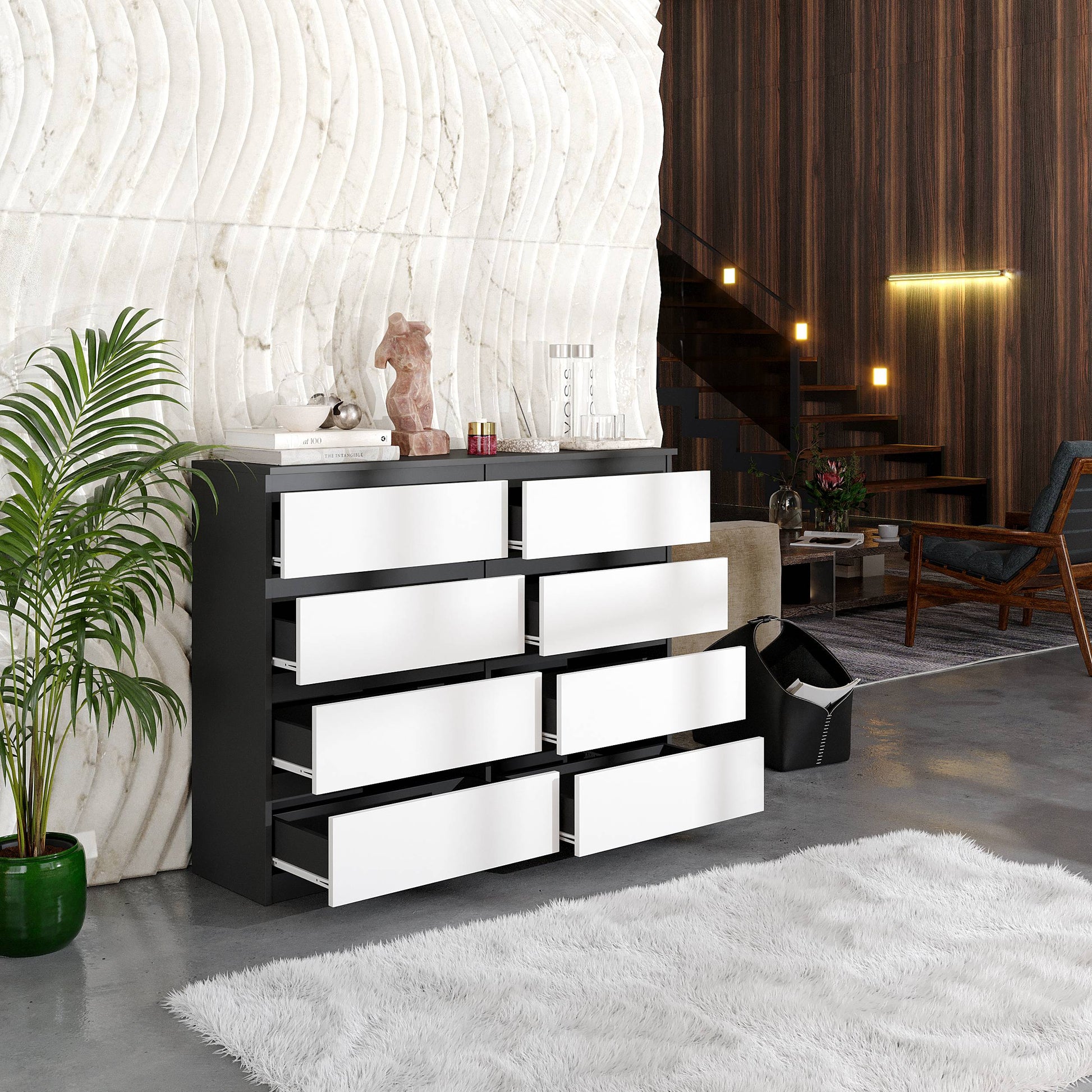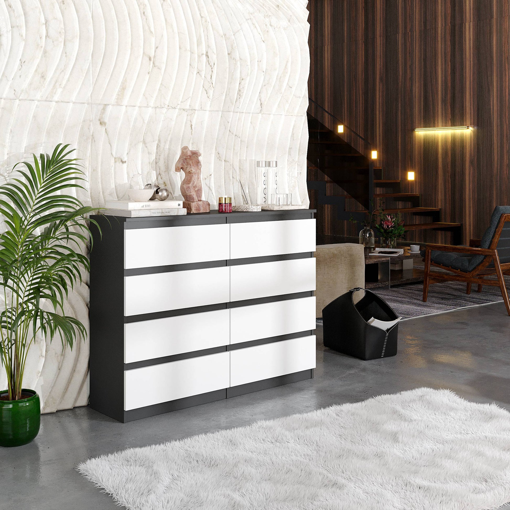 GABRIEL - Kommode / Sideboard mit 8 Schubladen - Anthrazit / Weiß Matt H92cm B120cm T33cm