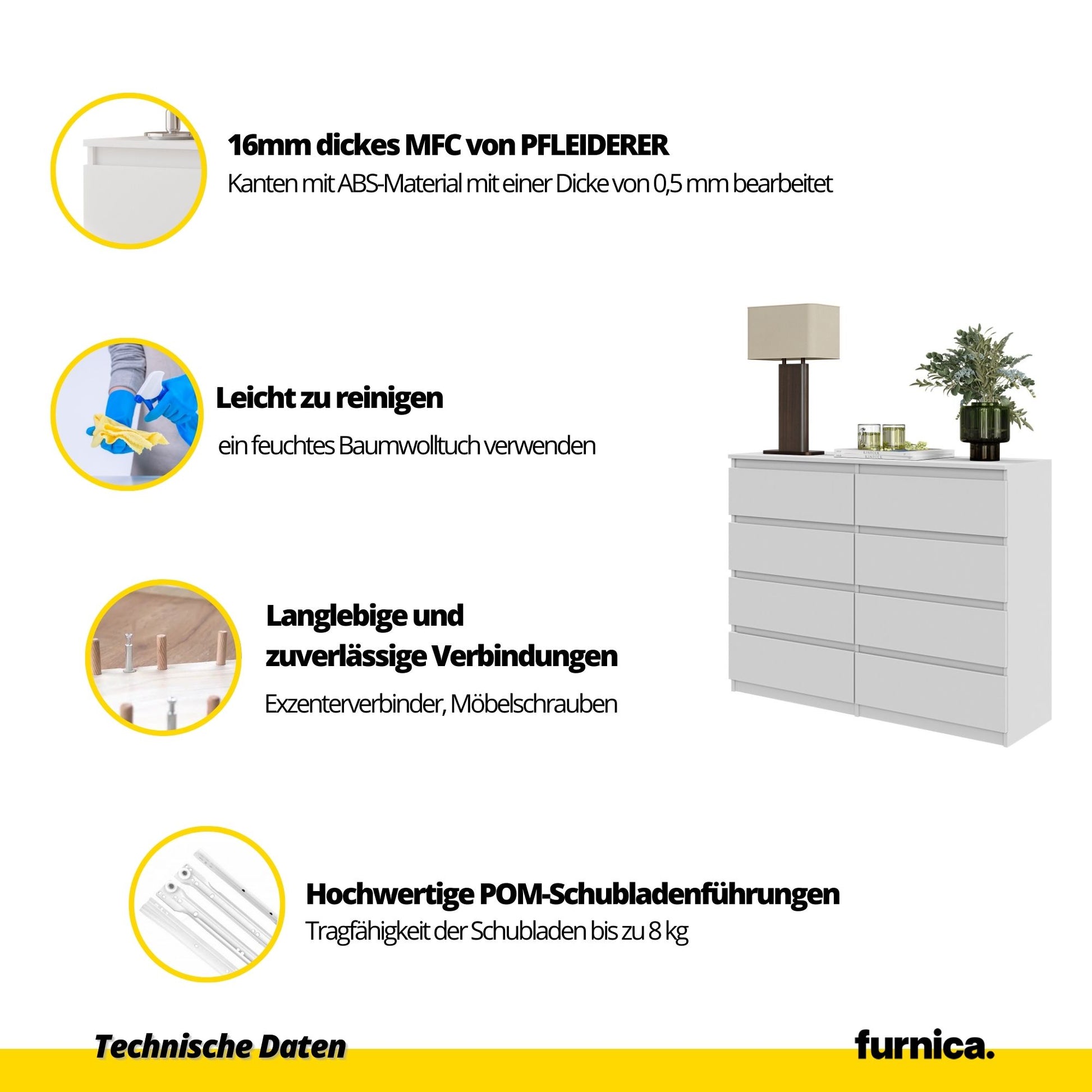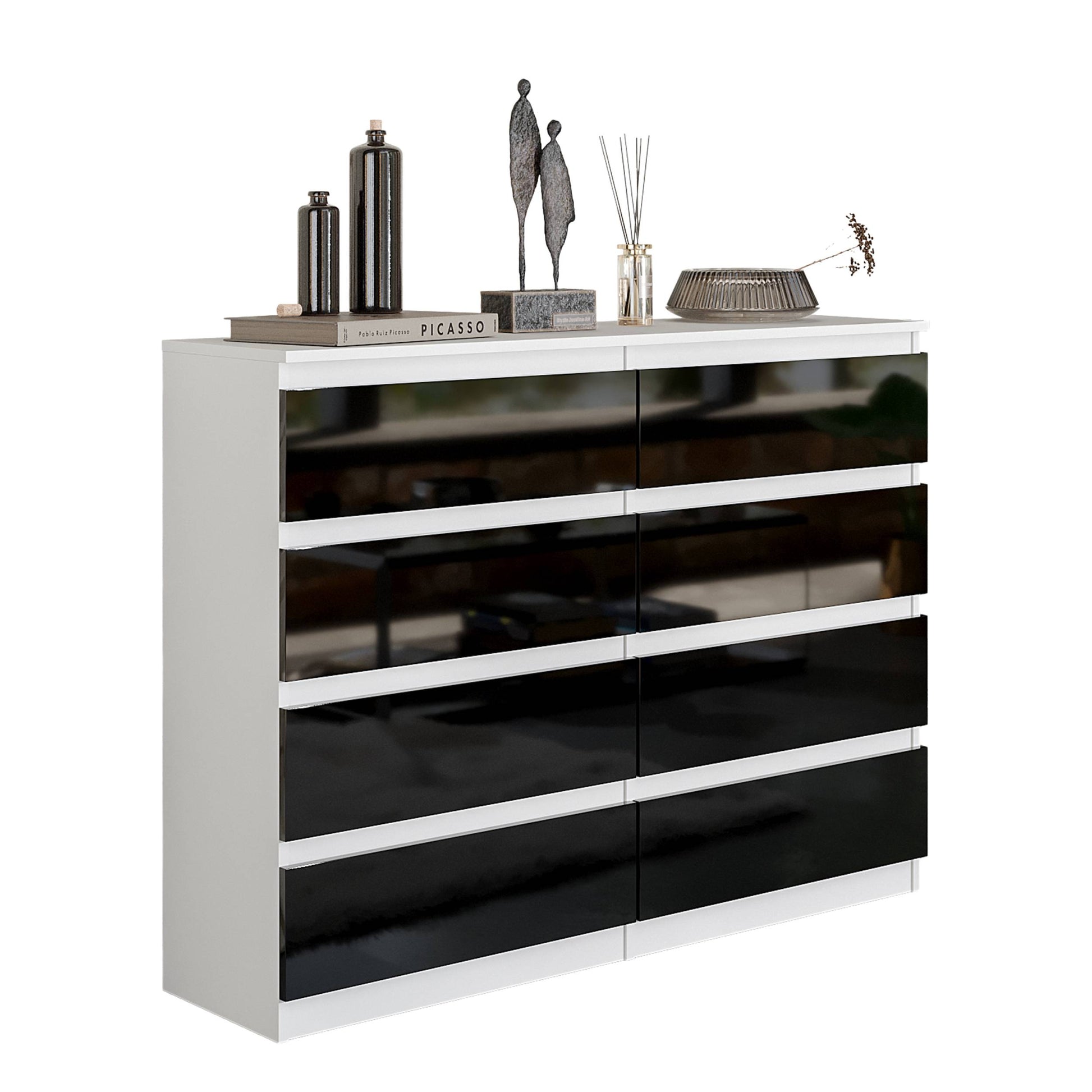 Kommode mit 8 Schubladen und schwarzer Glanzfront