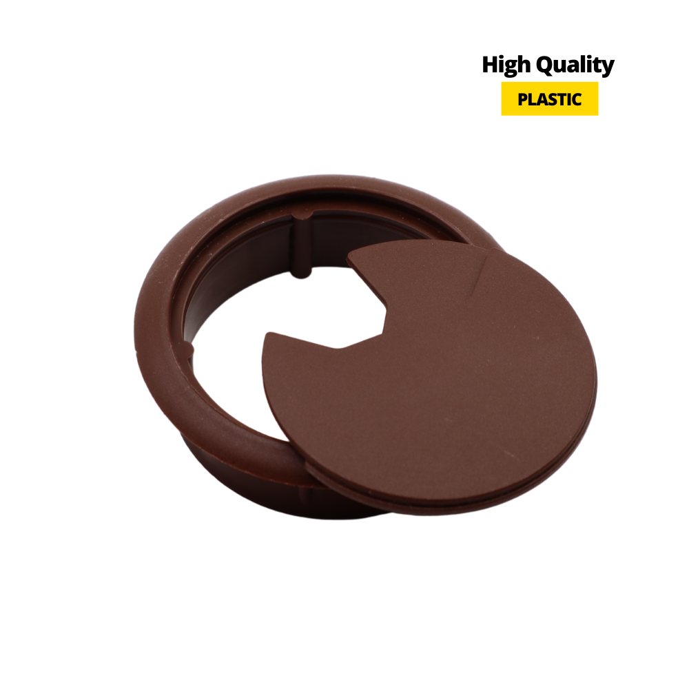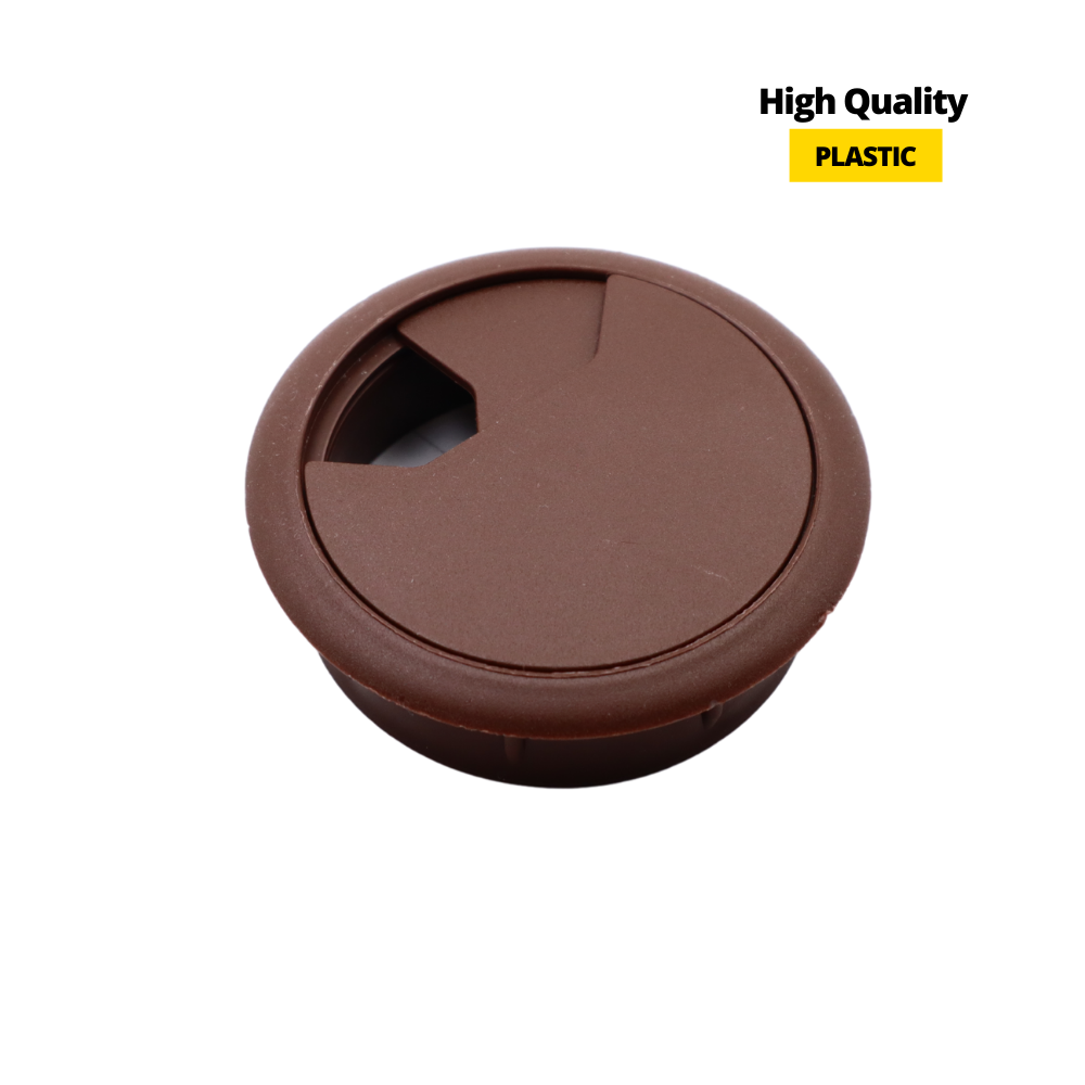 Die dunkelbraune Kabeltülle sieht in Kombination mit einer traditionellen Holzarbeitsplatte oder einem Schreibtisch gut aus. Das vorgestellte Produkt kann in ein Loch in einer Möbelplatte eingebaut werden. Dank dieser Funktion können Sie problemlos alle Kabel von elektrischen Geräten anordnen, wodurch Sie auch Ihr Zuhause aufgeräumt halten und ein bestimmtes Interieur ästhetisch gestalten können.
