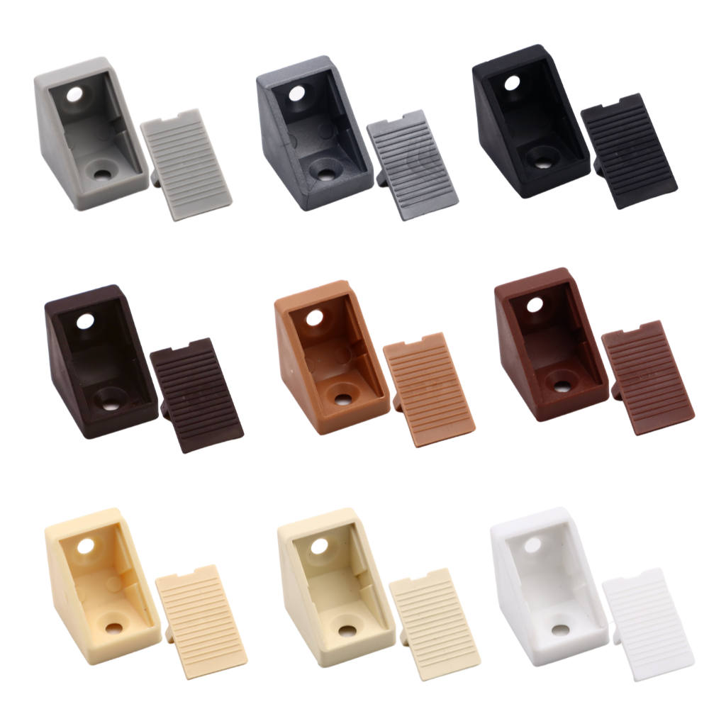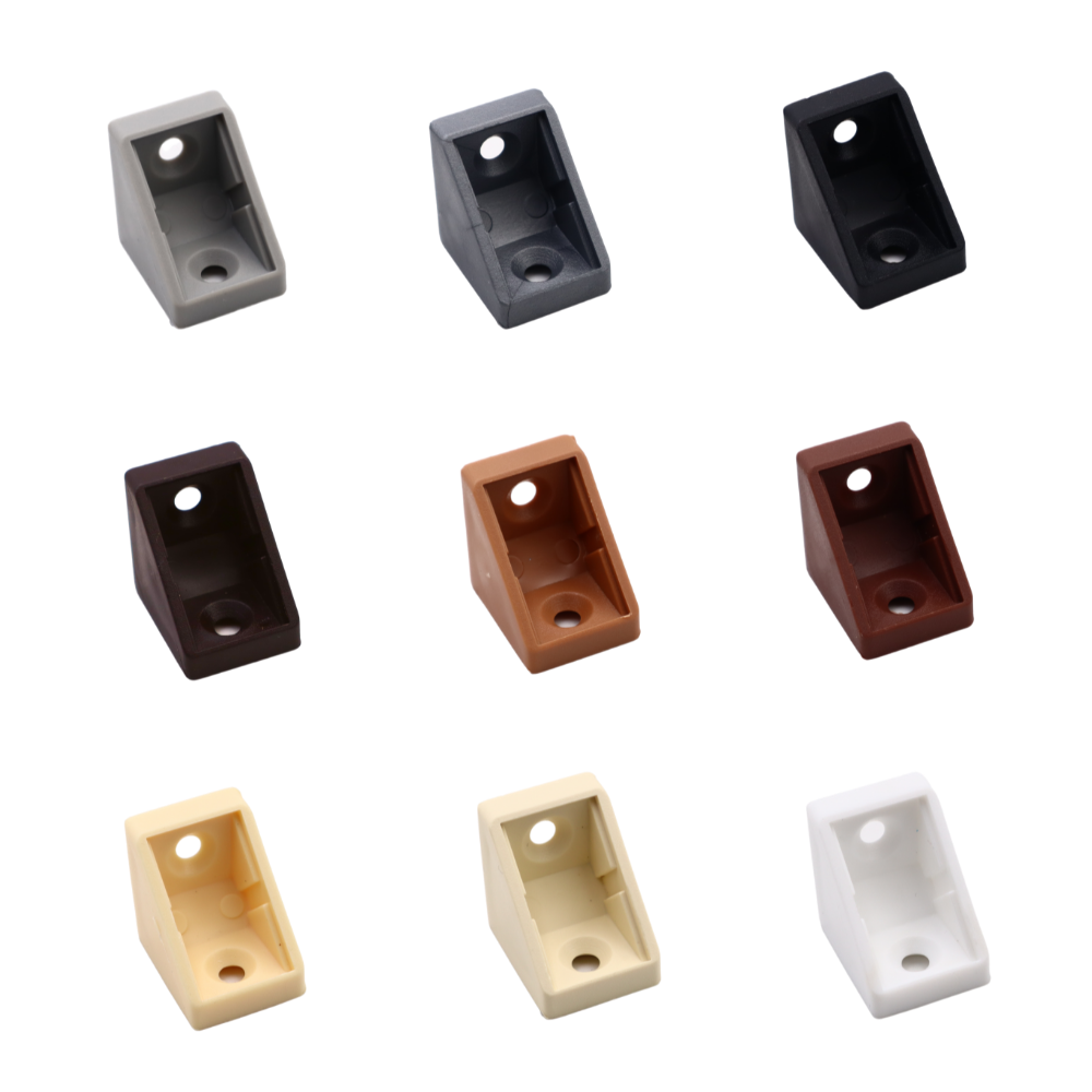 Der Korpusverbinder ist in mehreren Farbausführungen erhältlich und lässt sich dadurch optimal an unterschiedliche Möbeldekore anpassen.