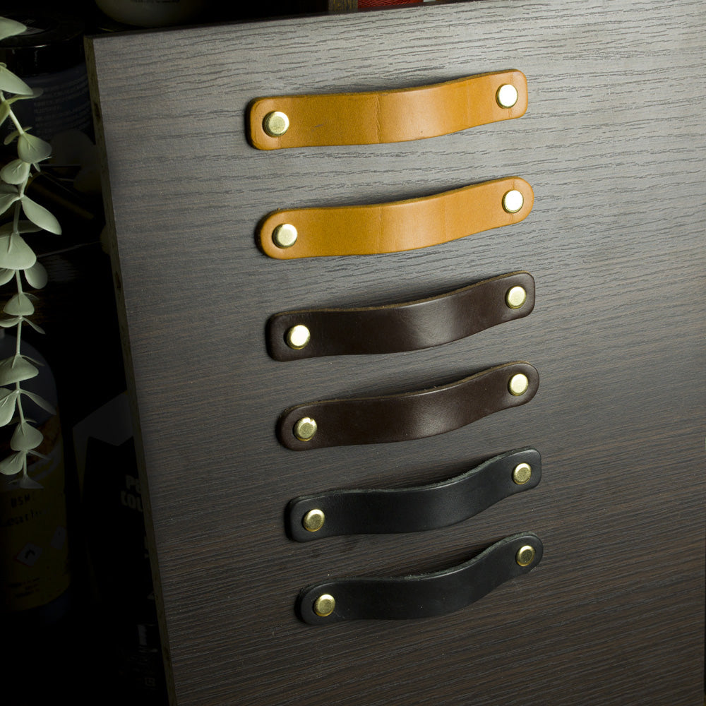 Hochwertiger runder Möbelgriff aus natürlichem, pflanzlich gegerbtem Leder, der zeitloses Design mit handwerklicher Präzision verbindet. Die leicht geschwungene Form sorgt für eine angenehme Haptik und verleiht Möbeln eine elegante, warme Ausstrahlung – ideal für moderne, klassische und skandinavische Interieurs.