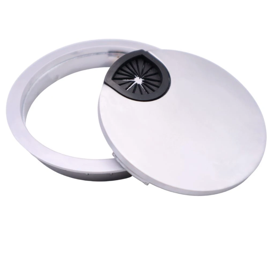 Diese Kabeldurchführung hat einen Durchmesser von 80 mm und ermöglicht es, viele dicke Kabel in einer kompakten Struktur zu führen. Die silberne, originelle Farbe bringt jeden Raum zum Glänzen und leuchtet ihn anmutig nicht aus. Eine gut gewählte Kabeldurchführung ist ein unverzichtbares Element eines jeden aufgeräumten Arbeitsplatzes.