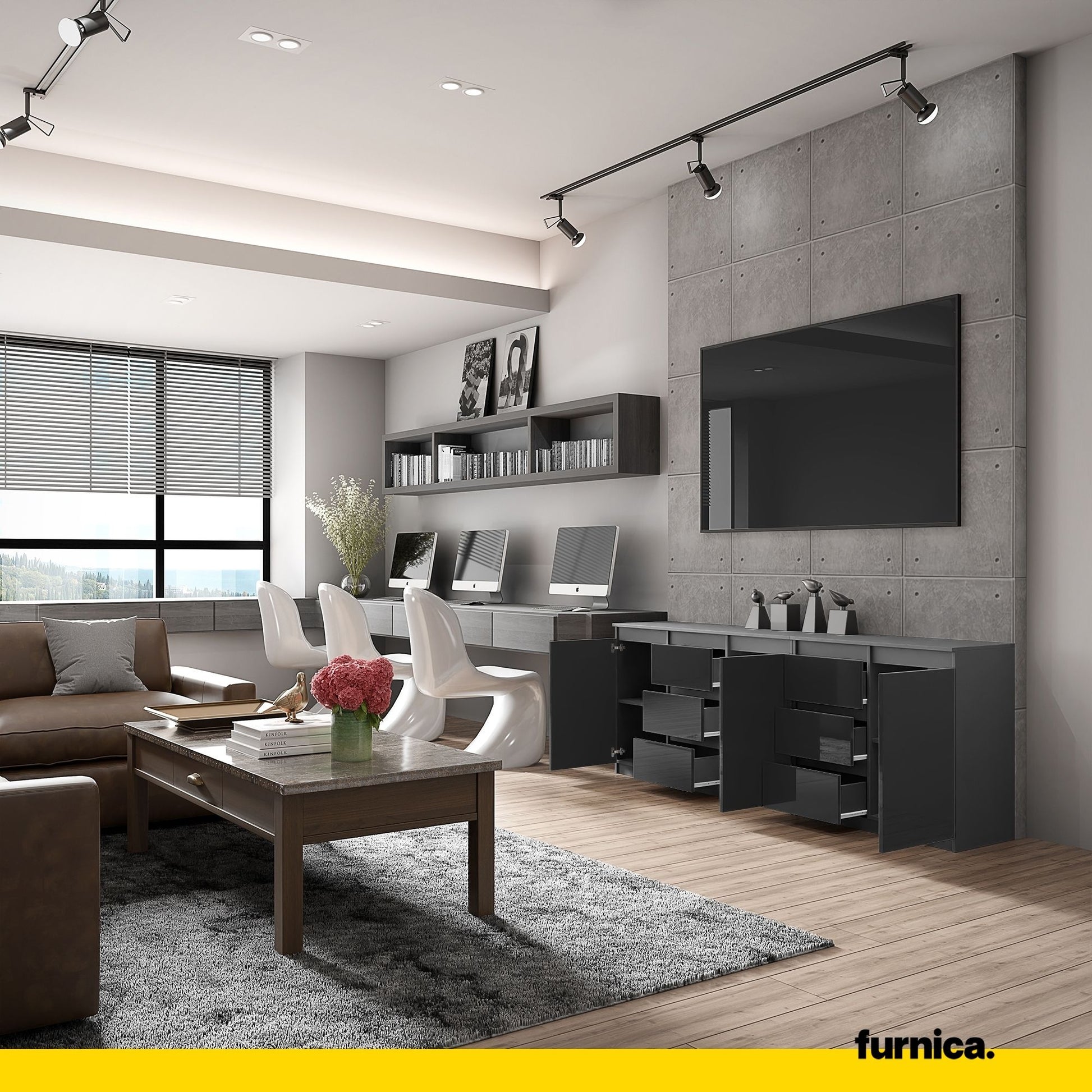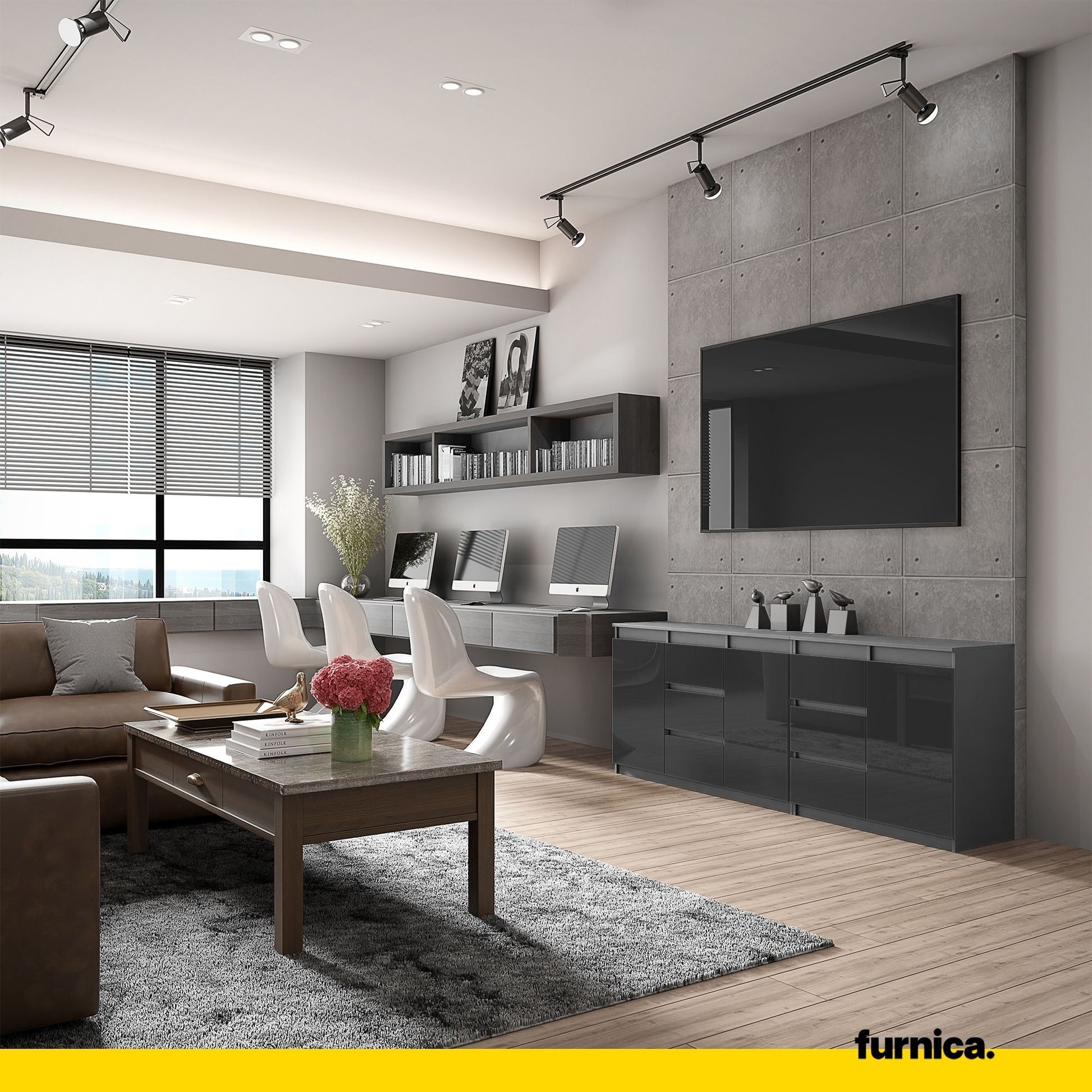 Wenn Sie auf der Suche nach modernen Möbeln sind, die eine perfekte Ergänzung für Ihr Interieur darstellen, könnte unsere neue Kommode genau das Richtige für Sie sein. Sie ist nicht nur ein praktisches Sideboard, sondern auch eine großartige Ergänzung für Ihr Zuhause. Der anthrazitfarbene Korpus und die schwarzen Hochglanzfronten sehen sehr klassisch, elegant und stilvoll aus. Sie werden die Optik dieser günstigen Kommode sicherlich lieben. Und auch die technischen Eigenschaften werden Sie begeistern!