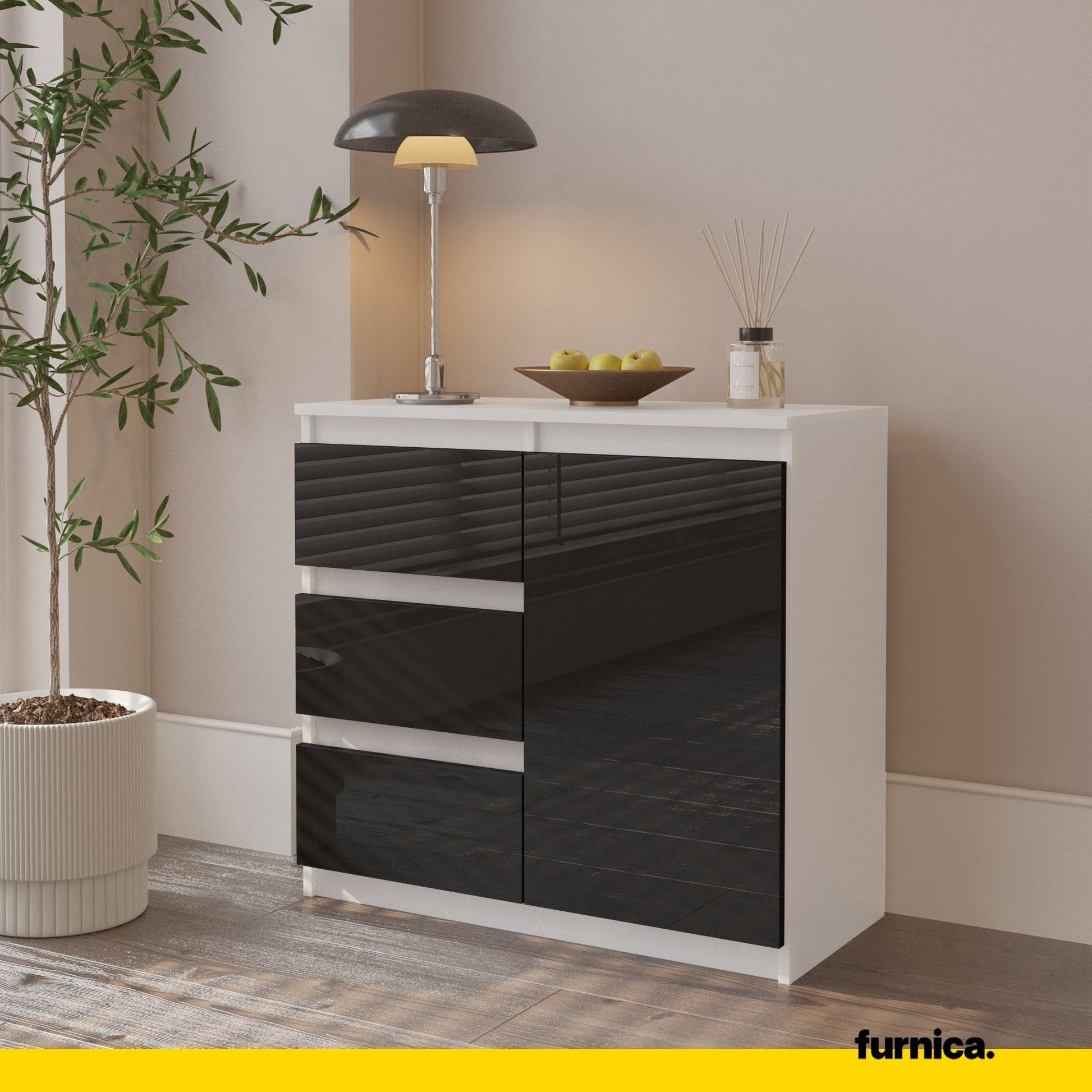 Kommode MIKEL mit 3 Schubladen - Weiß und Schwarz Glanz
