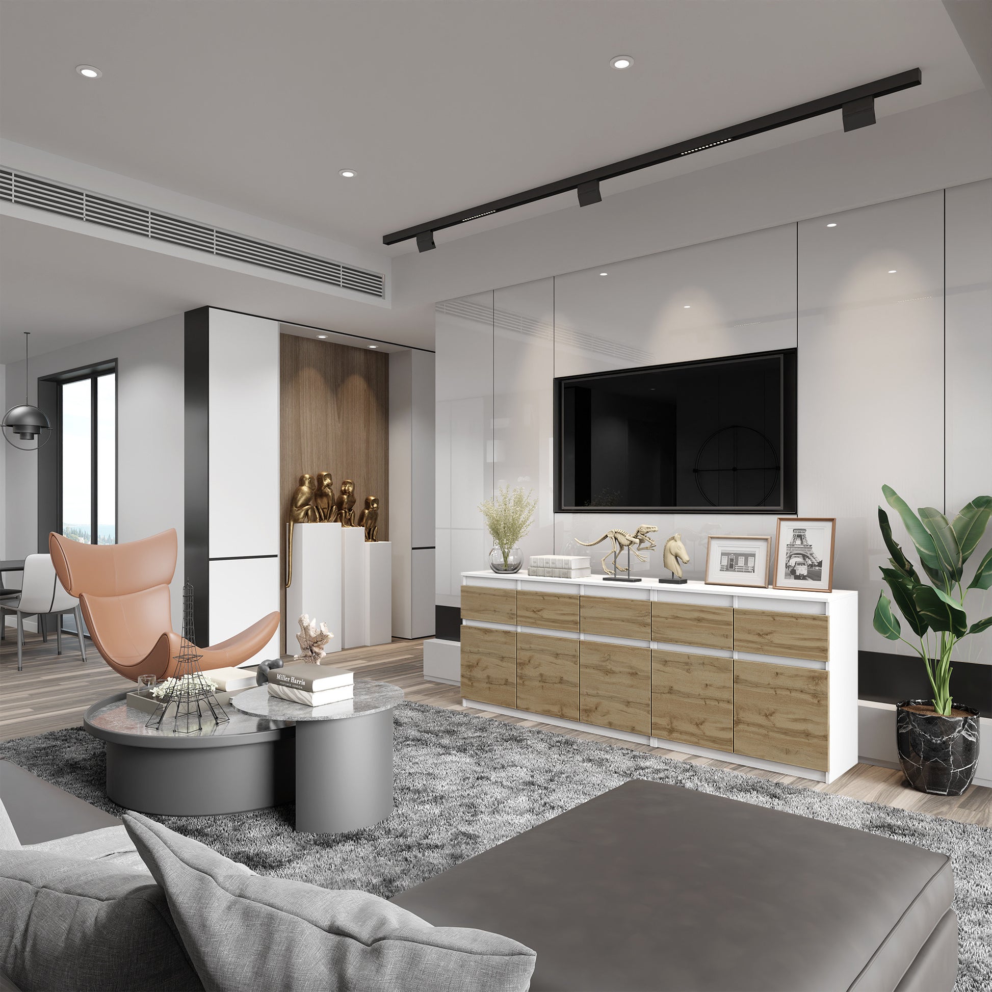 Unsere nützliche Kommode ist mit 5 geräumigen Schubladen und 5 Türen ausgestattet. Wie Sie sehen können, ist die Kapazität dieser modernen Kommode wirklich beeindruckend, und Sie werden dankbar dafür sein, sobald Sie sie montiert haben. Sie können dieses günstige Möbelstück überall einsetzen, wo Sie es möchten – im Wohnzimmer, Schlafzimmer, Flur und noch viel mehr. Die Möglichkeiten sind endlos mit einem großen Aufbewahrungsschrank dieser Art. Ganz zu schweigen davon, dass sich die optische Seite ebenfalls äußerst gut präsentiert. Unser modernes Möbelstück ist klassisch, schlicht und extrem vielseitig – und genau das mögen wir alle!
