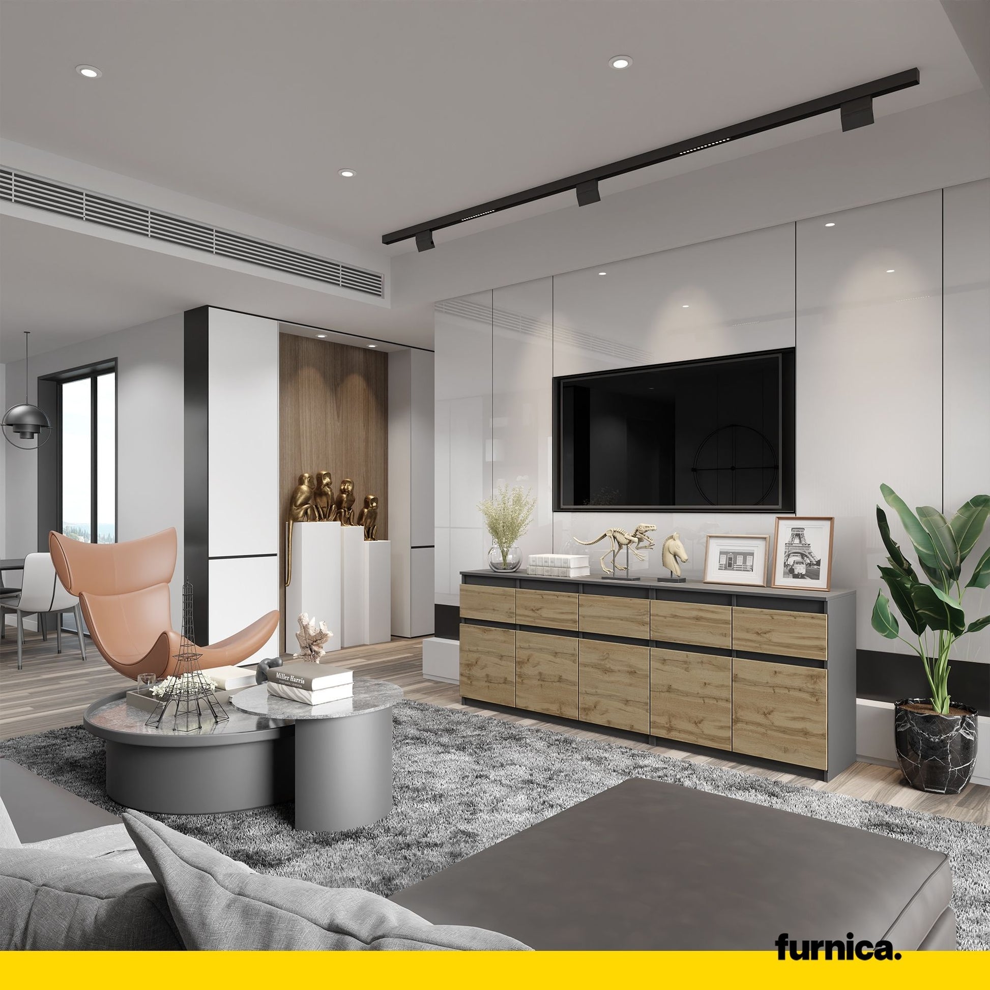 Eine funktionale Kommode dieser Art verfügt über 5 geräumige Schubladen und 5 Türen, sodass auch die Kapazität überzeugt. Sie ist 75 cm hoch, 200 cm breit und 35 cm tief. Jedes Detail wurde sorgfältig ausgearbeitet, sodass sowohl die technische als auch die optische Seite auf dem höchstmöglichen Niveau sind. Obwohl diese nützliche Kommode zu einem wirklich niedrigen Preis angeboten wird, ist die Qualität auf Premium-Niveau. Sie werden sich sicherlich in dieses günstige Möbelstück verlieben.