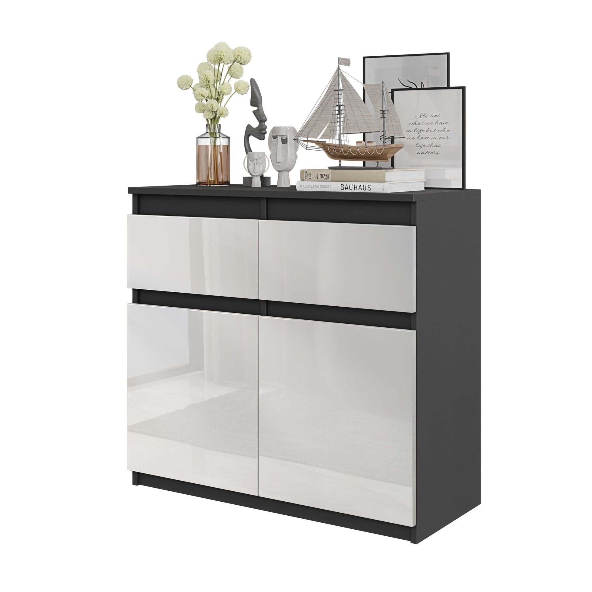 NOAH - Kommode mit 2 Schubladen und 2 Türen - Schlafzimmer Anrichte Stauraumschrank Sideboard - Anthrazit / Weiß Hochglanz H75cm B80cm T35cm