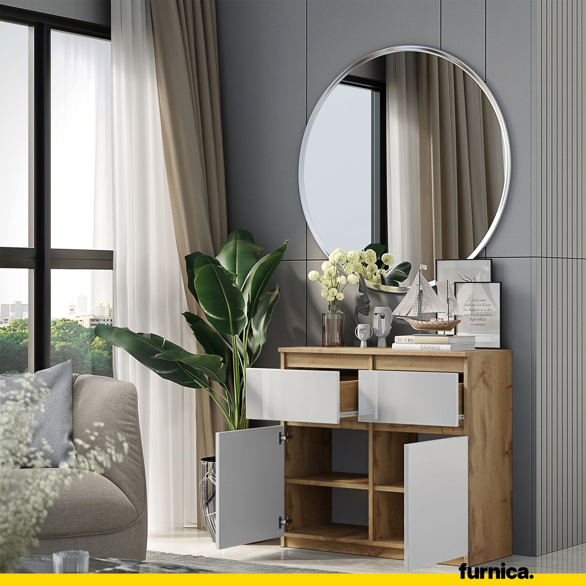 NOAH - Kommode mit 2 Schubladen und 2 Türen - Schlafzimmer Anrichte Stauraumschrank Sideboard - Wotan Eiche / Weiß Hochglanz H75cm B80cm T35cm