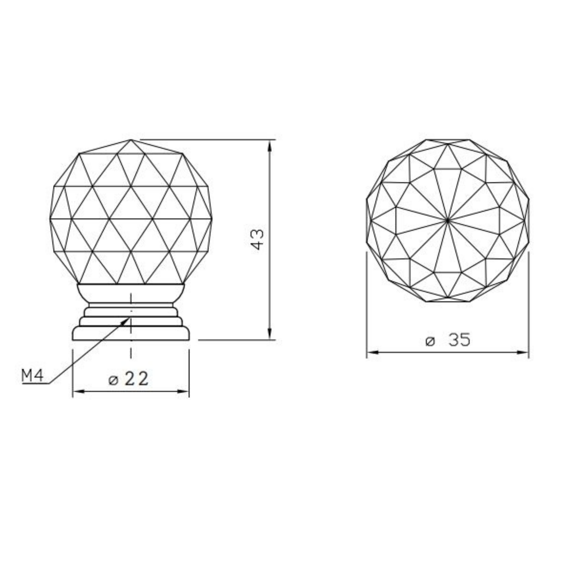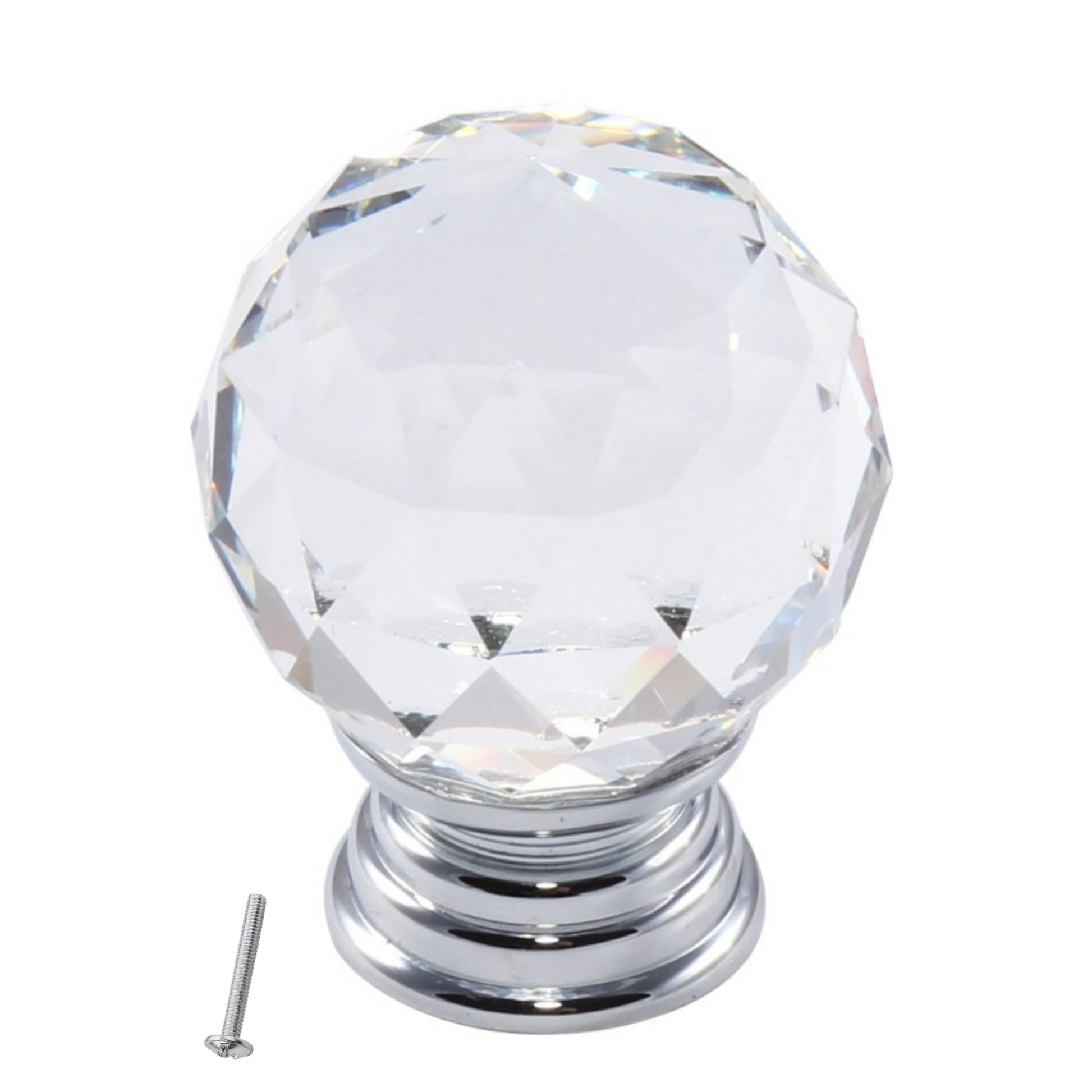 Runder Möbelknopf in Kristallglasoptik – Ø 35 mm – Chrom