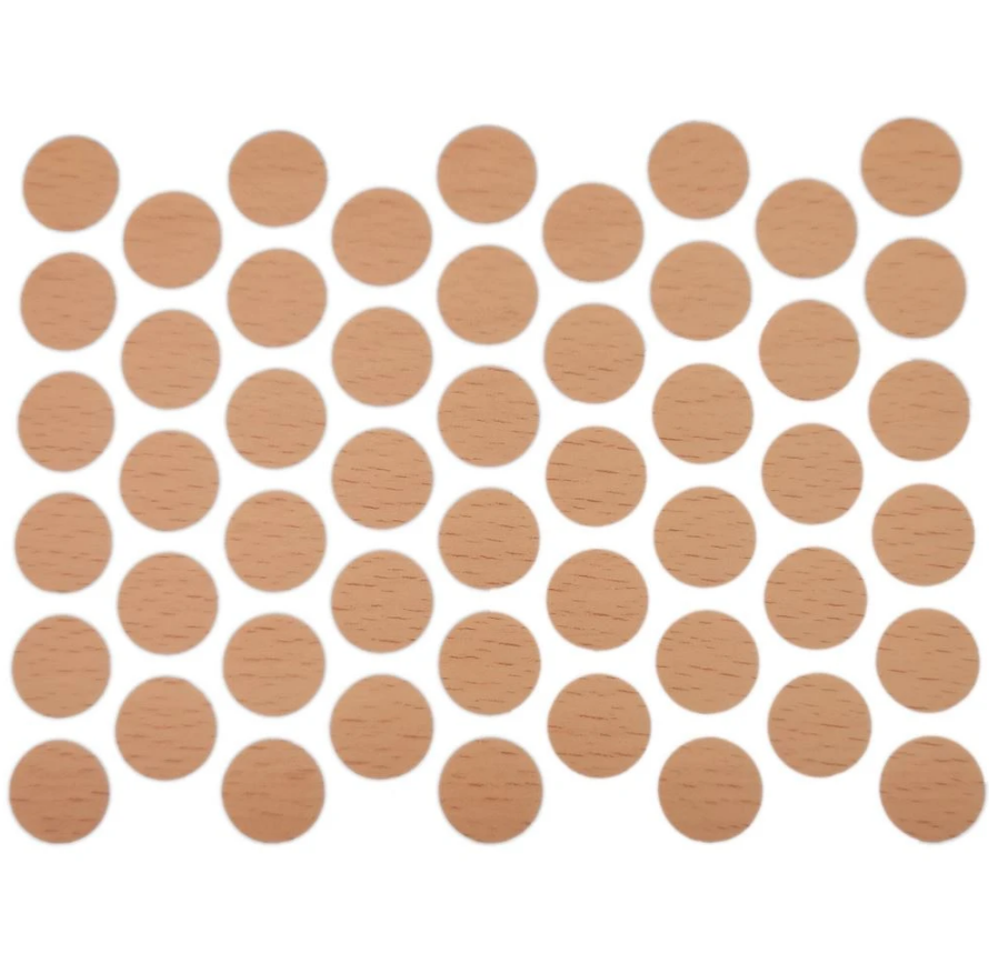 Diese selbstklebenden Möbeldübel werden in der Farbe Buche präsentiert. Diese holzähnliche Farbe passt perfekt zu Möbeln aus der gleichen Holzart und sorgt für eine perfekte Komposition.