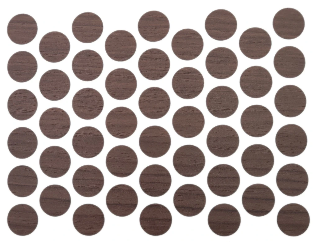 Die scheibenförmigen Abdeckkappen wurden auf die universelle Größe zugeschnitten - mit einem Durchmesser von 14 mm passen sie zu den unterschiedlichsten Kunden. Der Bogen besteht aus 50 selbstklebenden Abdeckkappen in der Farbe Eiche Chamonix, die perfekt mit dem braunen Klima harmoniert.
