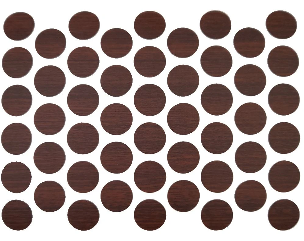 Die Abdeckkappen sind in 14-mm-Scheiben geschnitten und bieten somit eine universelle Größe. Ein Bogen enthält 50 Stück, was für eine lange Zeit reichen kann. Die Mahagonifarbe ist eine Klasse für sich und passt sicher zu jeder Oberfläche.