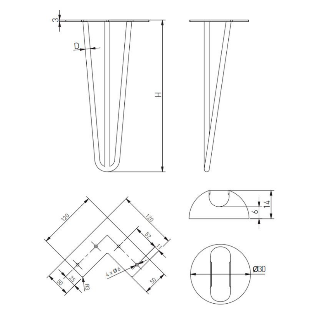 Technische Daten: Möbelbein Schwarz Matt - 406mm