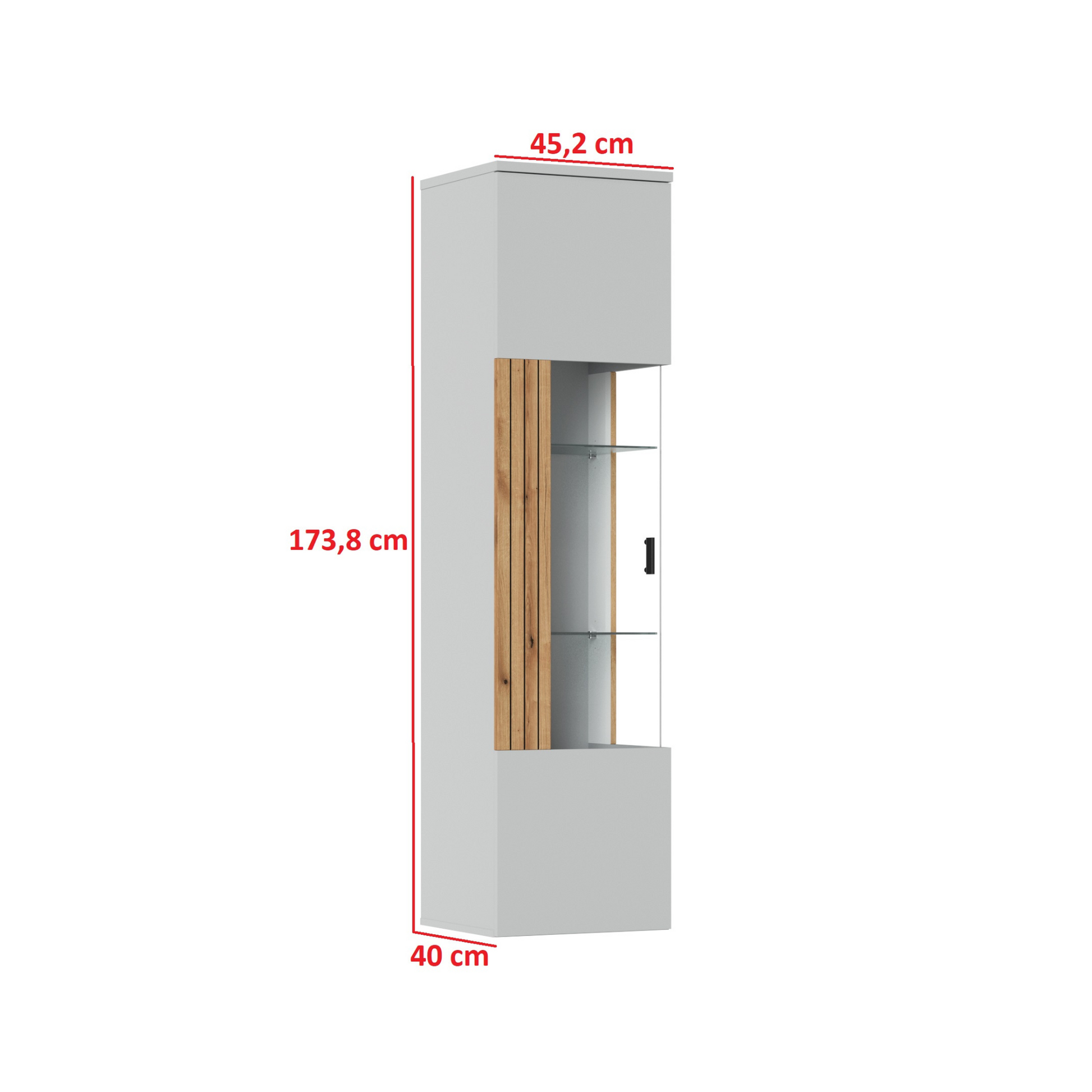 Hochschrank mit Glasvitrine: 50 x 207 x 40 cm