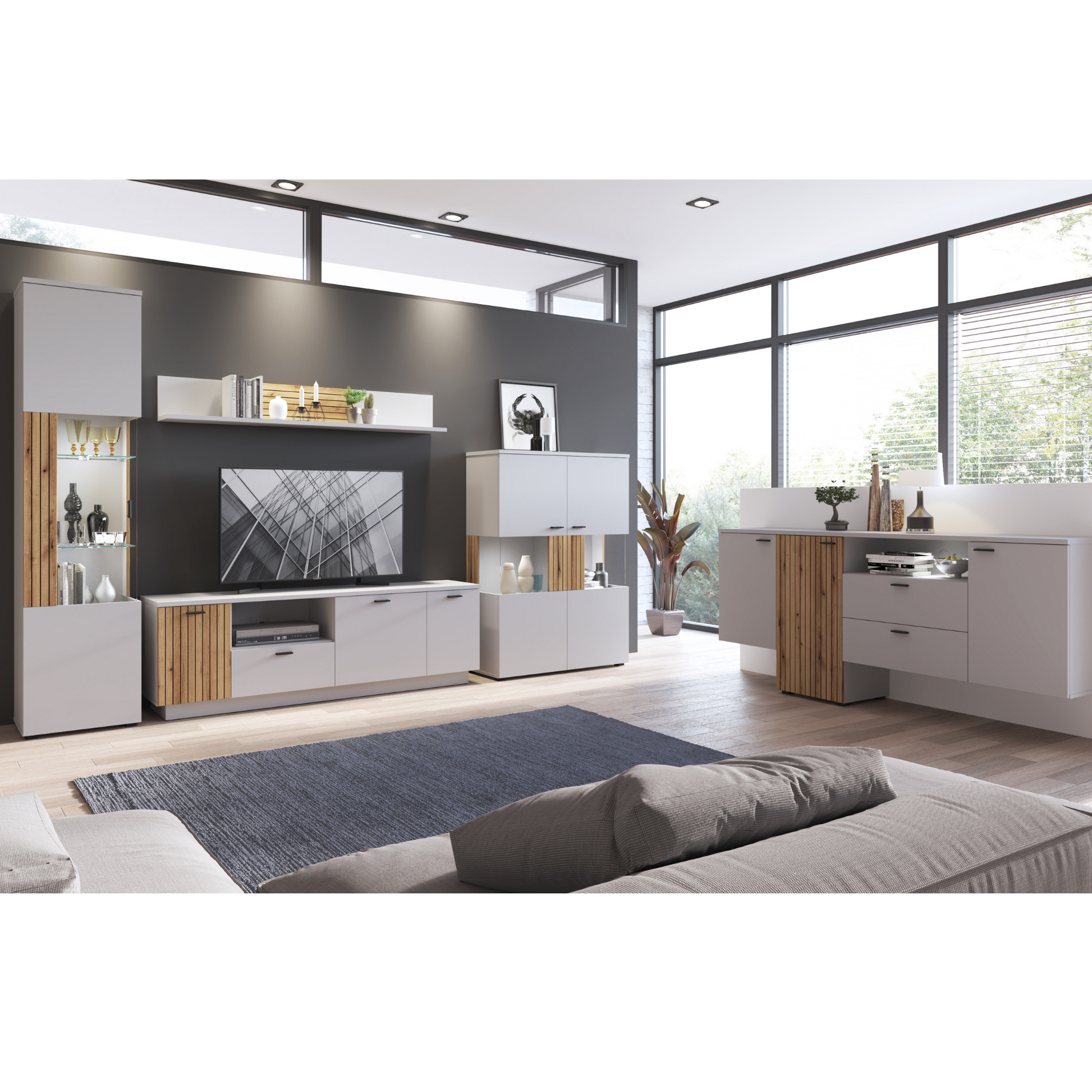 Technische Daten: VERO - Wohnzimmer-Möbel-Set - Esche Grau / Eiche Coast Evoke